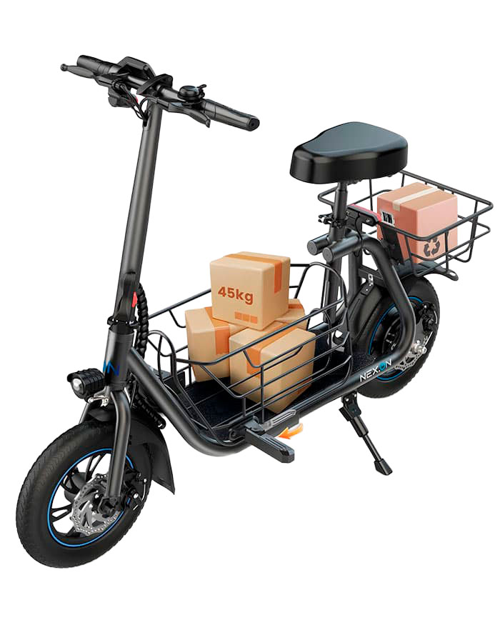 Com uma prateleira central removível e um cesto traseiro reforçado, ele se adapta perfeitamente às suas tarefas, deslocamentos ou até ao transporte de um pet de porte médio, tudo apoiado por um quadro de alta resistência com capacidade de até 265 lbs (120 kg).